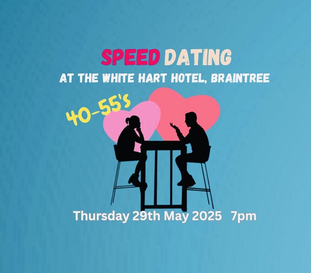 We are excited to be hosting a Speed Dating event for singles aged 40-55 at The White Hart Hotel in Braintree.